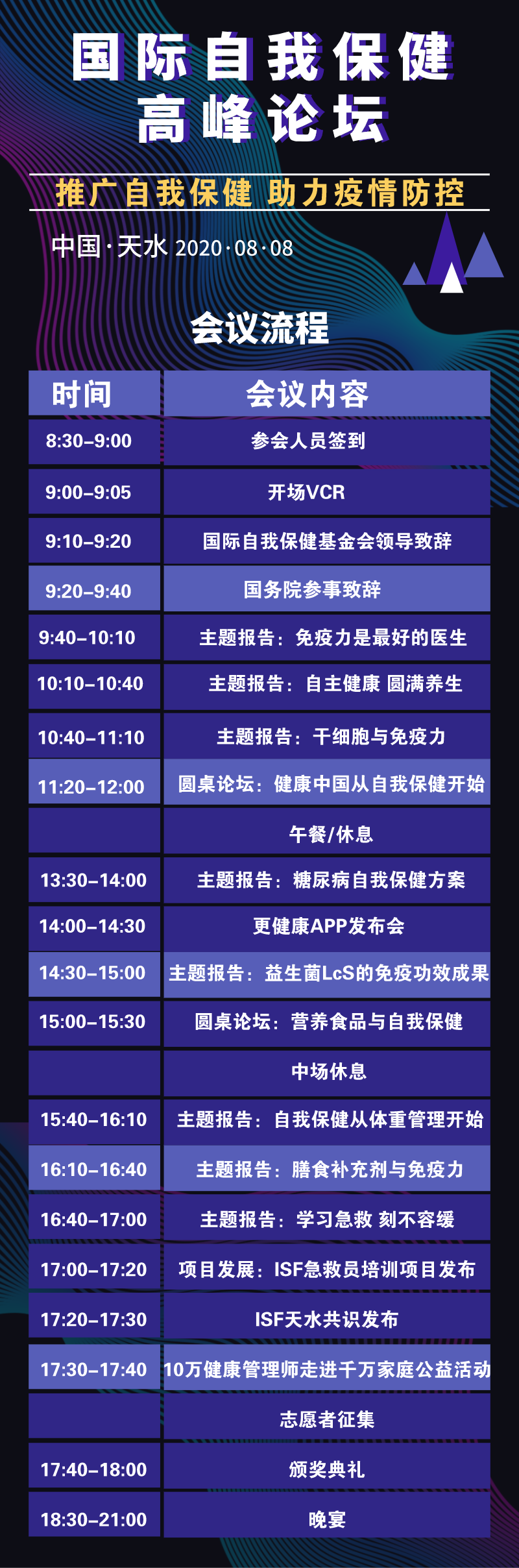 8月8日由国际自我保健基金会(International Selfcare Foundation)主办,首都保健营养美食学会、中国老年保健协会膳食指导专委会联合主办,共同举办主题为“推广自我保健 助力疫情防控”的2020年国际自我保健高峰论坛活动。