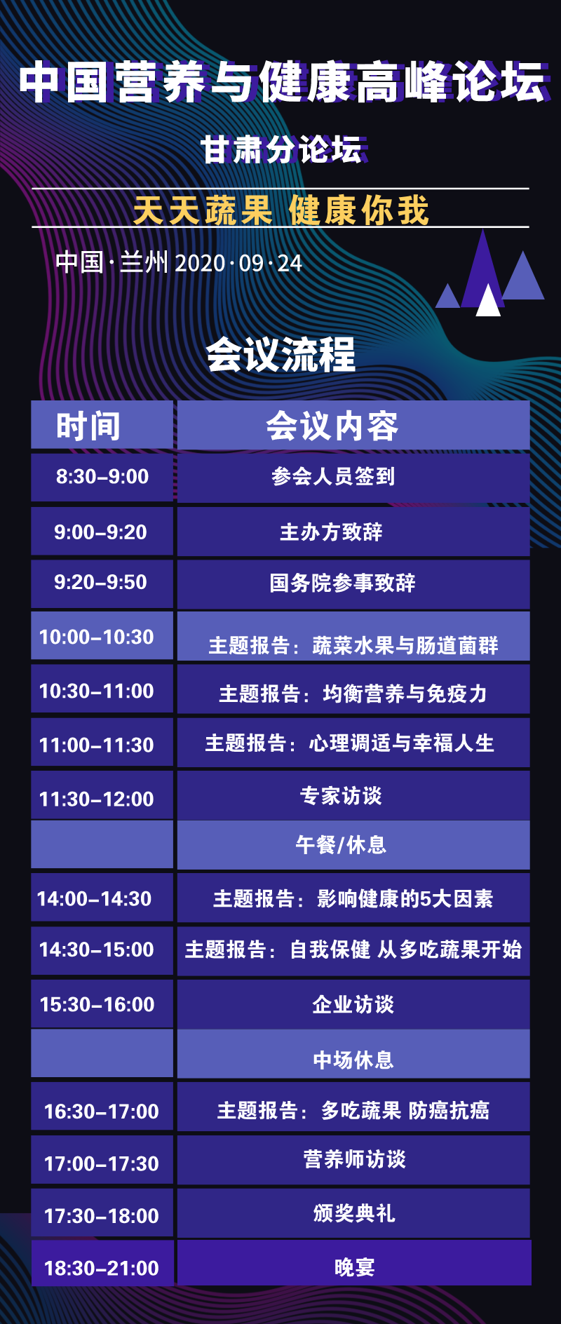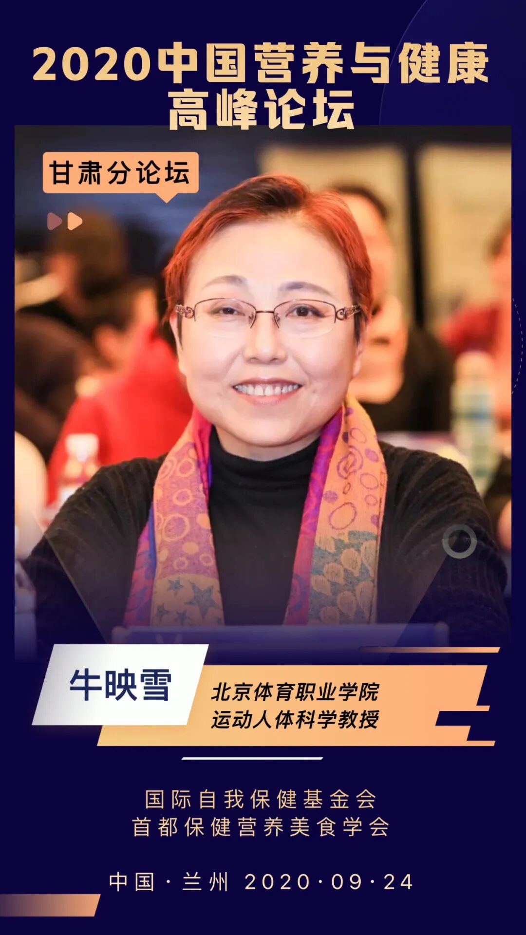 9月24日由国际自我保健基金会(International Selfcare Foundation)主办,首都保健营养美食学会、甘肃宇航职业培训学校联合主办主题为“天天蔬果 健康你我”的2020年中国营养与健康高峰论坛甘肃分论坛活动。